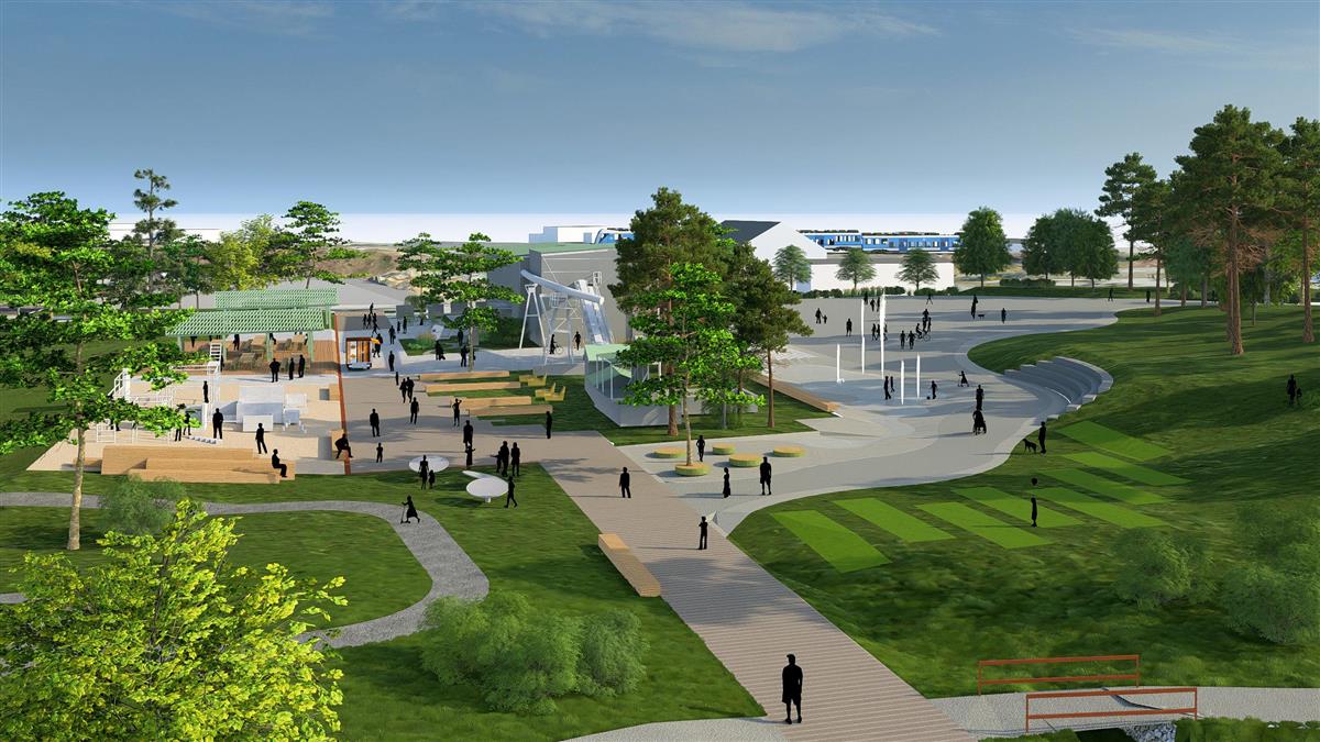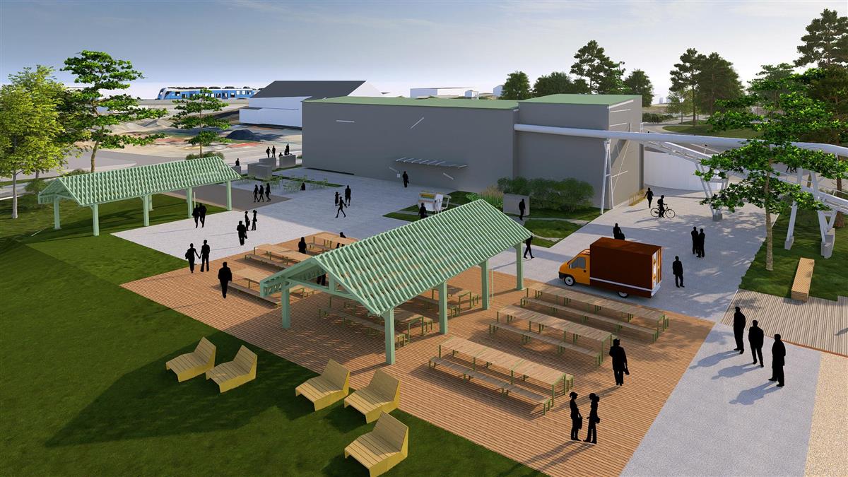 Området nord for hallen vil bli stort og åpent, og at det kan brukes til store arrangementer, festivaler, sirkus og tivoli.