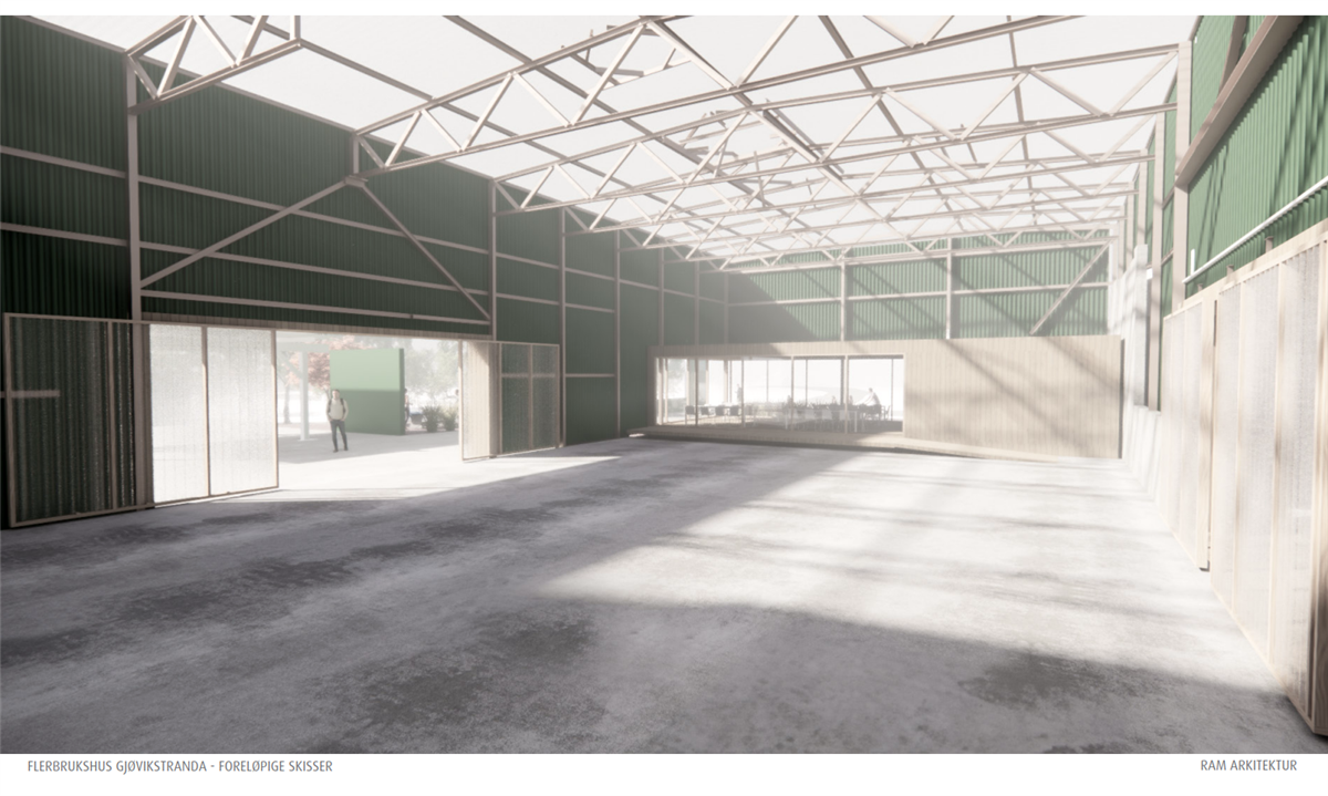 Vi vil gjenbruke mest mulig av det vi fjerner inne i hallen. For eksempel kan vi gjøre om betongkonstruksjoner til sittebenker, stålkonstruksjoner til pergolaer og rampe til inngangsparti. Gjøvikstranda skal bli noe helt eget som bygger på vår historie og identitet.