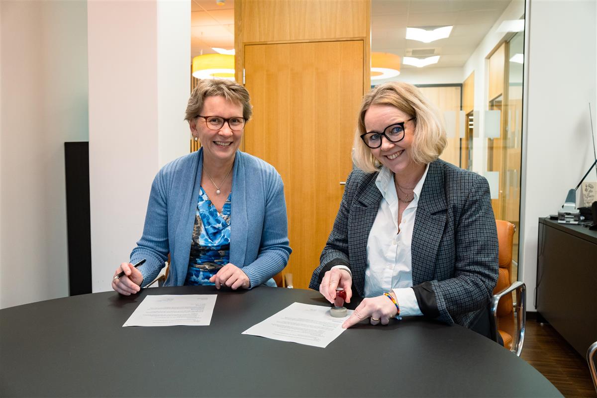 Ny universitetskommuneavtale er signert. Fra venstre viserektor ved NTNU i Gjøvik Gro Iren Kvanli Dæhlin og varaordfører Anne Bjertnæs