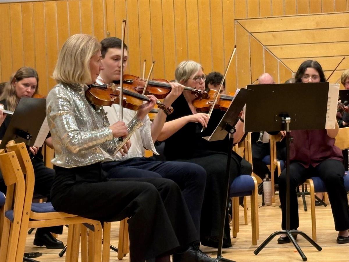 Amatører og profesjonelle - i herlig samspill. Til høyre her vår egen cellolærer Ida som leder an i cellogjengen!Å få spille orkestermusikk på dette nivået betyr mye. For elevene er dette en unik læringsarena – et sted der undervisning blir levende praksis. For lærerne er det å få utøve musikk profesjonelt på mange måter helt sentralt for å opprettholde og videreutvikle seg selv som musikere. For byen er det et uttrykk for et sterkt og levende musikkliv. Og for kulturskolen er det et bilde på noe av det mest grunnleggende vi driver med.